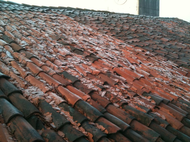Rifacimento completo del tetto della Chiesa con rimozione manto in fibrocemento “eternit”, rimozione struttura esistente in legno con mantenimento di n° 2 capriate a memoria storica e costruzione nuova struttura in legno lamellare con superiore manto in lastre di fibrocemento ecologiche e successiva posa in opera coppi recuperati dotati di fermacoppo in rame antiscivolo. Realizzazione sulle volte sottostanti la copertura di manto in schiuma poliuretanica impermeabilizzante con funzione di coibentazione. Tutto il tetto oggetto dell’intervento è stato portato in sicurezza mediante apposito ponteggio perimetrale.